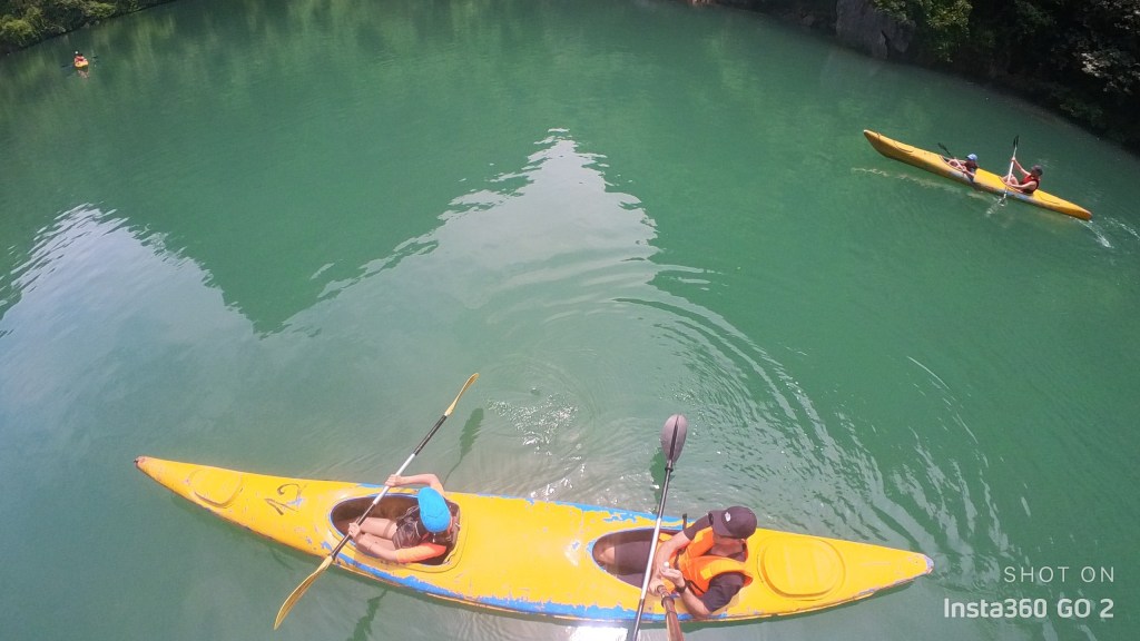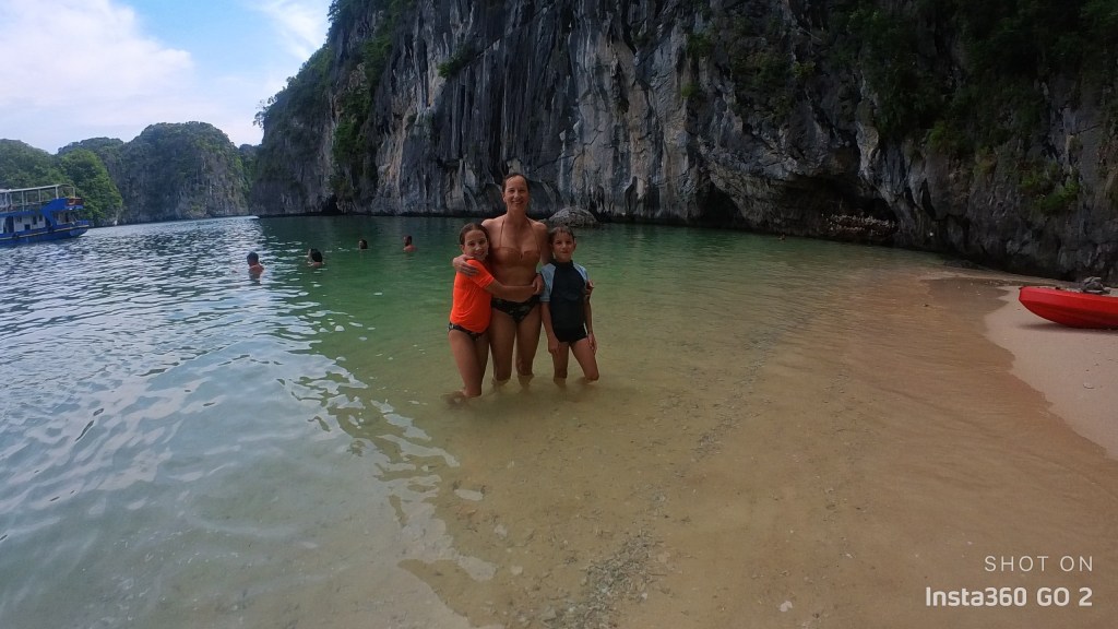 Nous jetons l’ancre au milieu de la baie le temps d’une promenade en kayak. Accès à un petit lagon après être passés sous plusieurs voûtes.