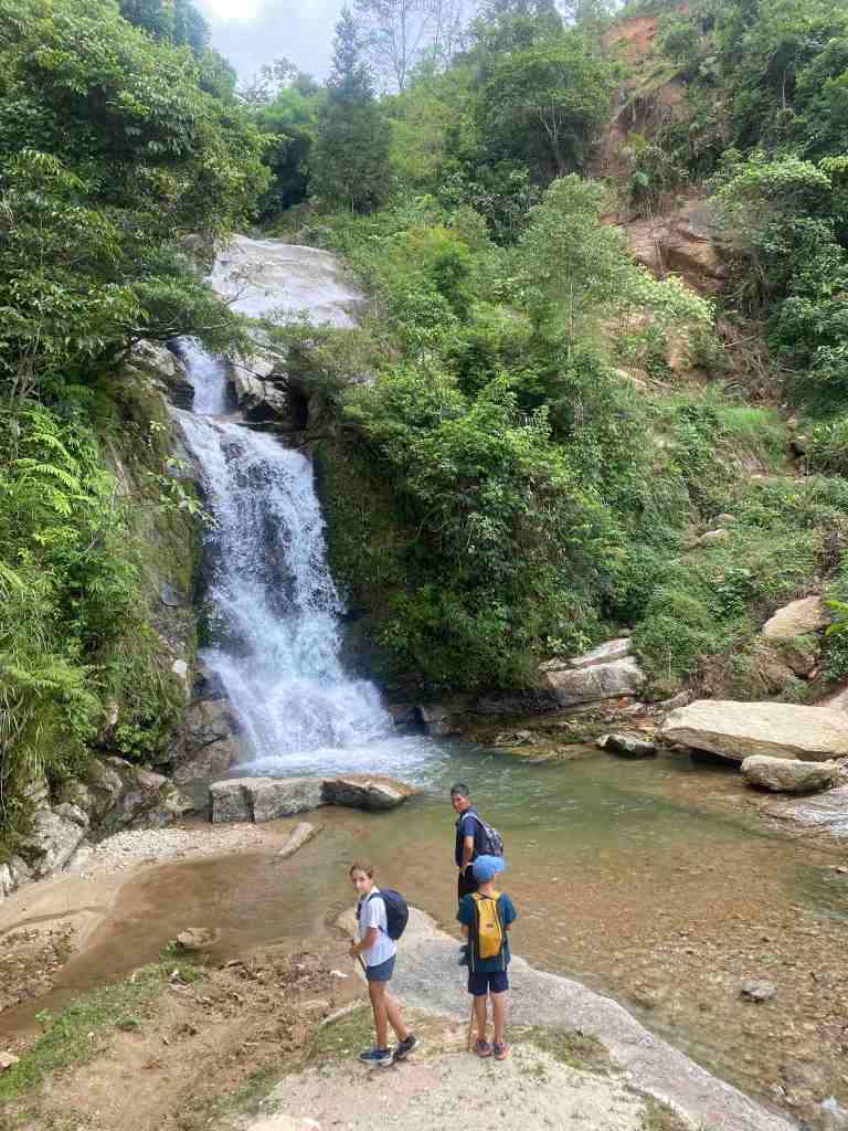 Pendant le trek on a rencontré une cascade, et on a dû quitter nos chaussures pour pouvoir passer