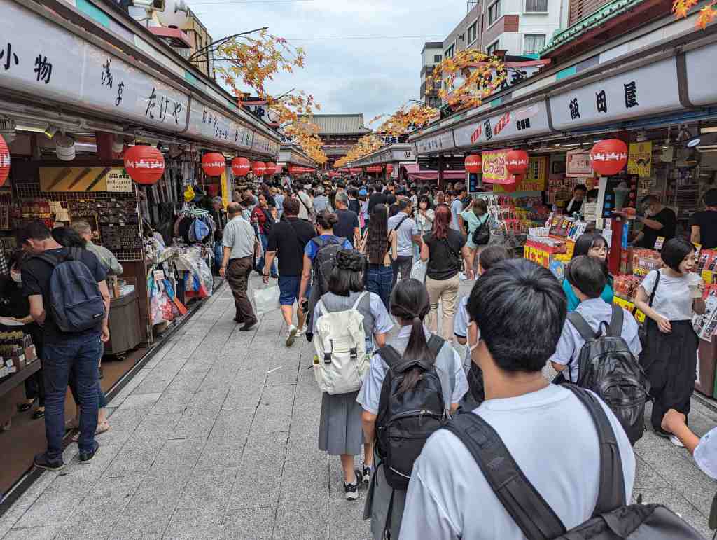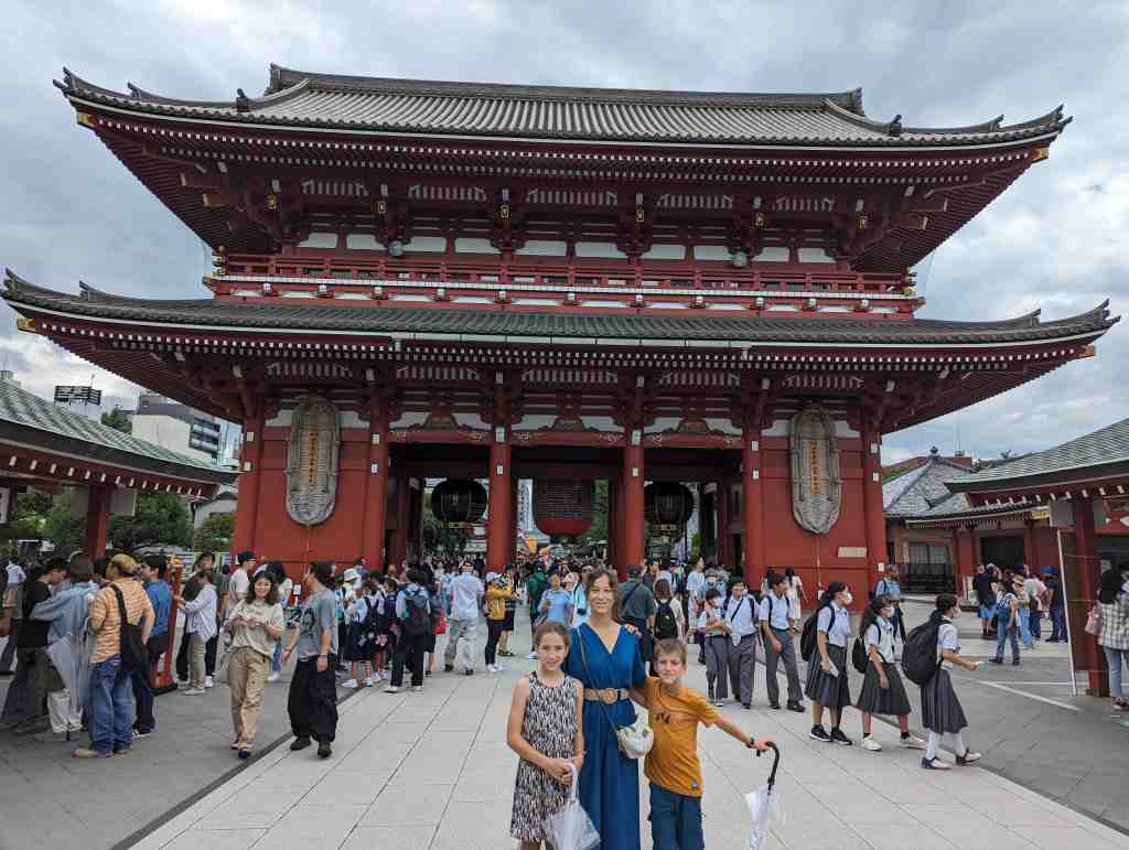 On était dans le plus vieux temple bouddhiste de Tokyo, appelé Senso-Ji. Et pour entrer, il faut se purifier : on prend une louche d’eau sacrée, on se la verse dans la main droite, puis avec la main droite on prend la louche et on se verse l’eau sur la main gauche, et ensuite avec l’eau on se rince la bouche. Dans ce temple, il y avait une pagode à 5 étages, il y avait des lanternes en papier de 4 mètres de haut. Il y avait aussi la porte du tonnerre qui était l’entrée principale.