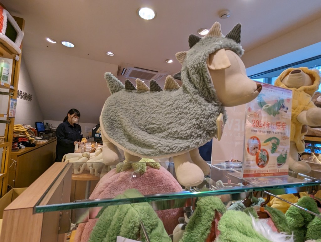 On est rentré dans un magasin pour chien. Quelle surprise en voyant l’intérieur !!! Il y a des chaussons, des pyjamas, des vêtements, des poussettes et des sacs….comme pour les bébés. Les chiens ici sont tout chouchoutés, limite déguisés.