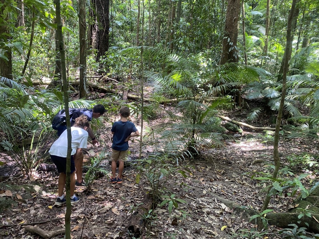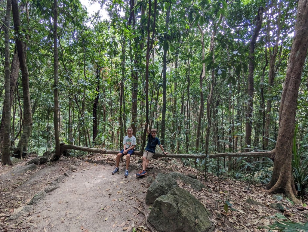Nous avons apprécié les promenades dans la forêt tropicale, Micka et Axel se sont même baignés avec les locaux dans la rivière, sous mon regard inquiet et stressé d’y voir un serpent d’eau ou un crocodile…