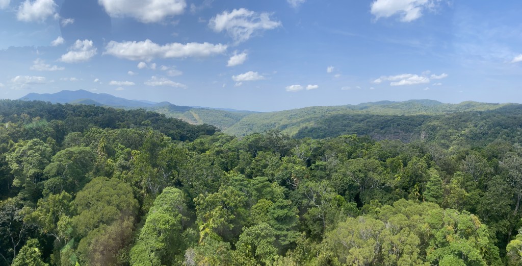 Circuit touristique en télécabine puis train au-dessus de la forêt tropicale, vieille de 300 millions d’années. Crocodiles, serpents, araignées, fougères-paniers et arbres figuiers étrangleurs à observer pour ne citer que cela. C’était finalement moins oppressant que ce que l’on pensait.