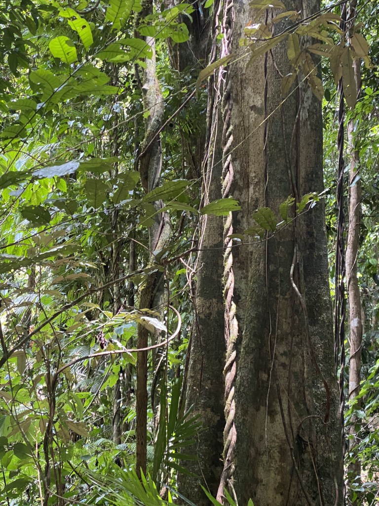 Dans la forêt, certains arbres sont capables de végéter pendant des années, ne dépassant pas 1 mètre de haut. Et dès qu’une éclaircie apparaît au-dessus d’eux grâce à la chute d’un arbre à côté, ils poussent de façon accélérée pour aller chercher la lumière plus vite que leurs voisins. Les fougères quant à elles s’accrochent aux arbres alentours, s’y s’implantent et prolifient sur la partie haute des arbres. D’autres s’arrêtent vers le haut de l’arbre et forment une sorte de paniers avec leurs feuilles où les pythons aiment nicher.