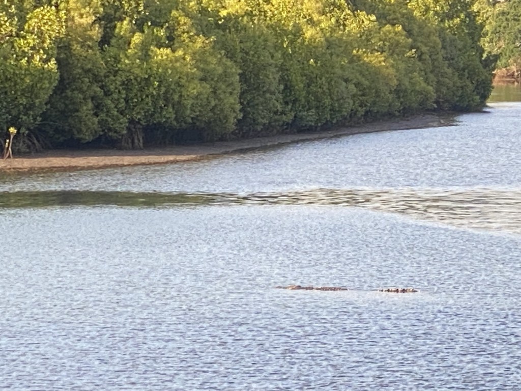 Ici, on peut voir un crocodile, au milieu de la rivière.