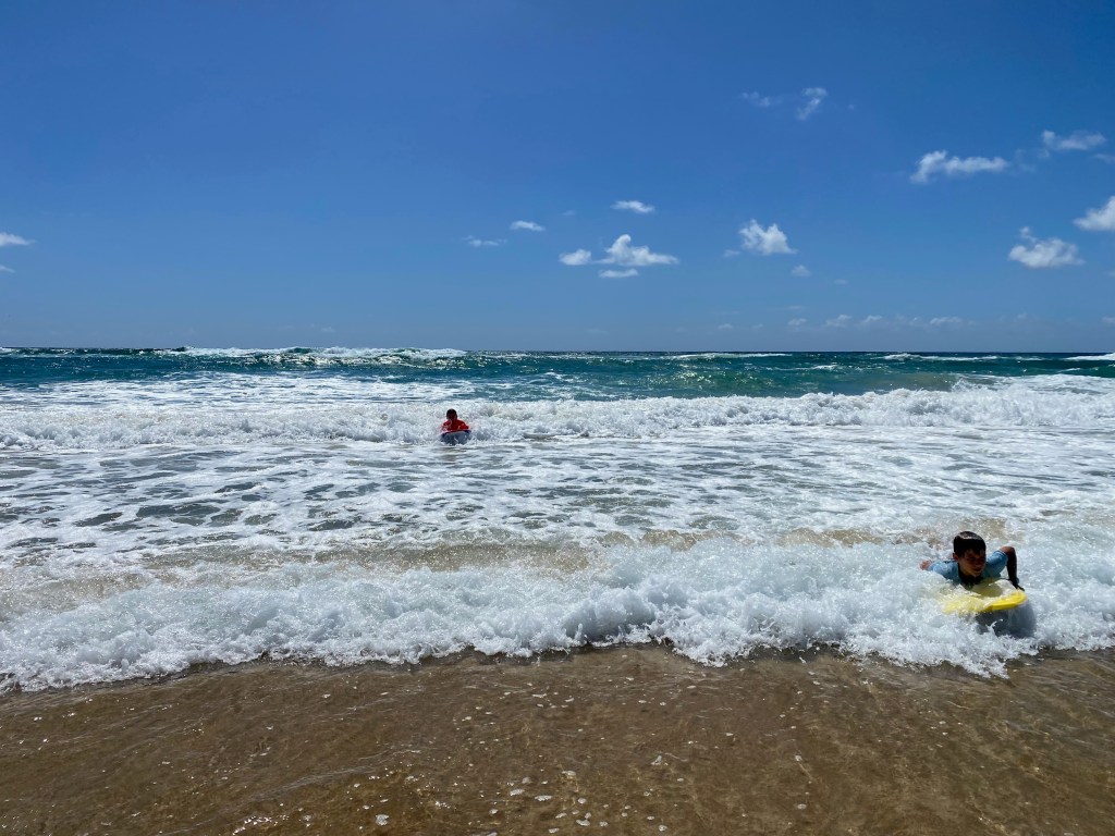 Nous avons fait beaucoup de bodyboard. L’eau était assez chaude. Les vagues sont énormes même si on ne s’en rend pas forcément compte sur les vidéos. Les vagues peuvent atteindre les 3 mètres.