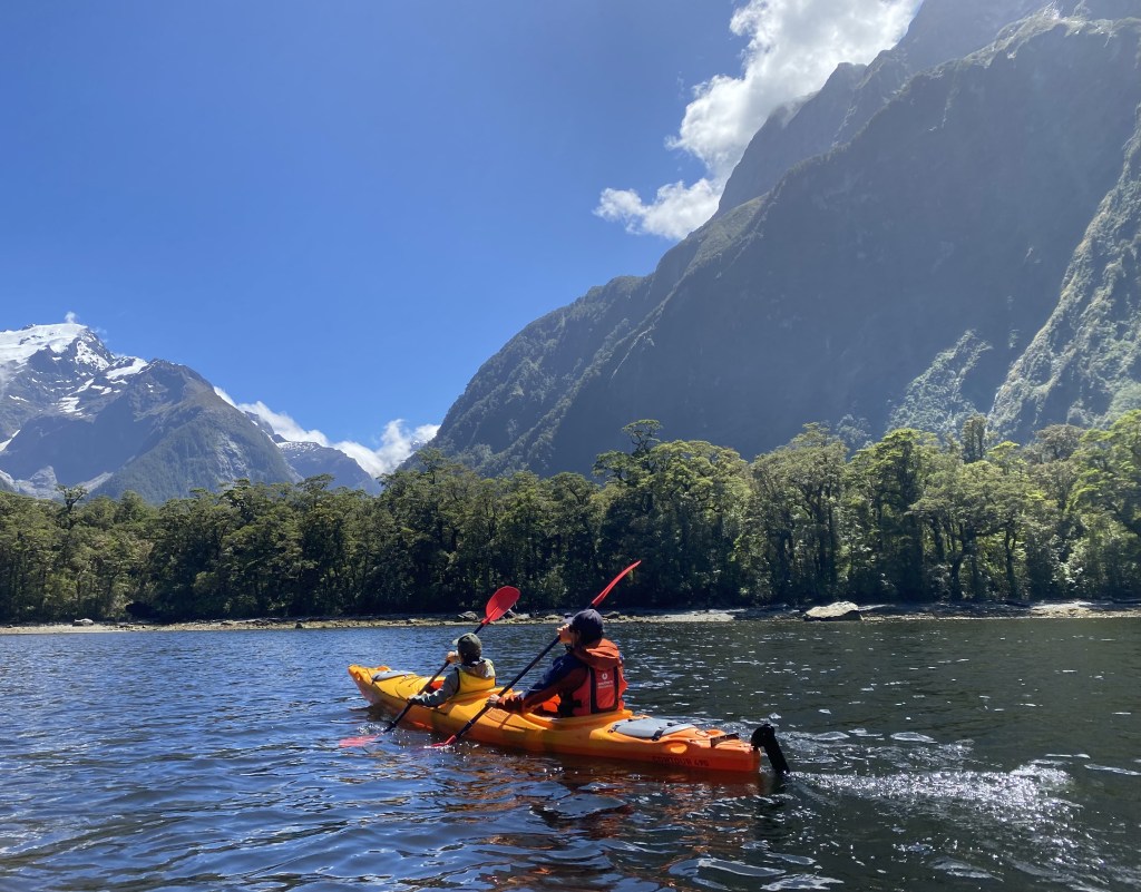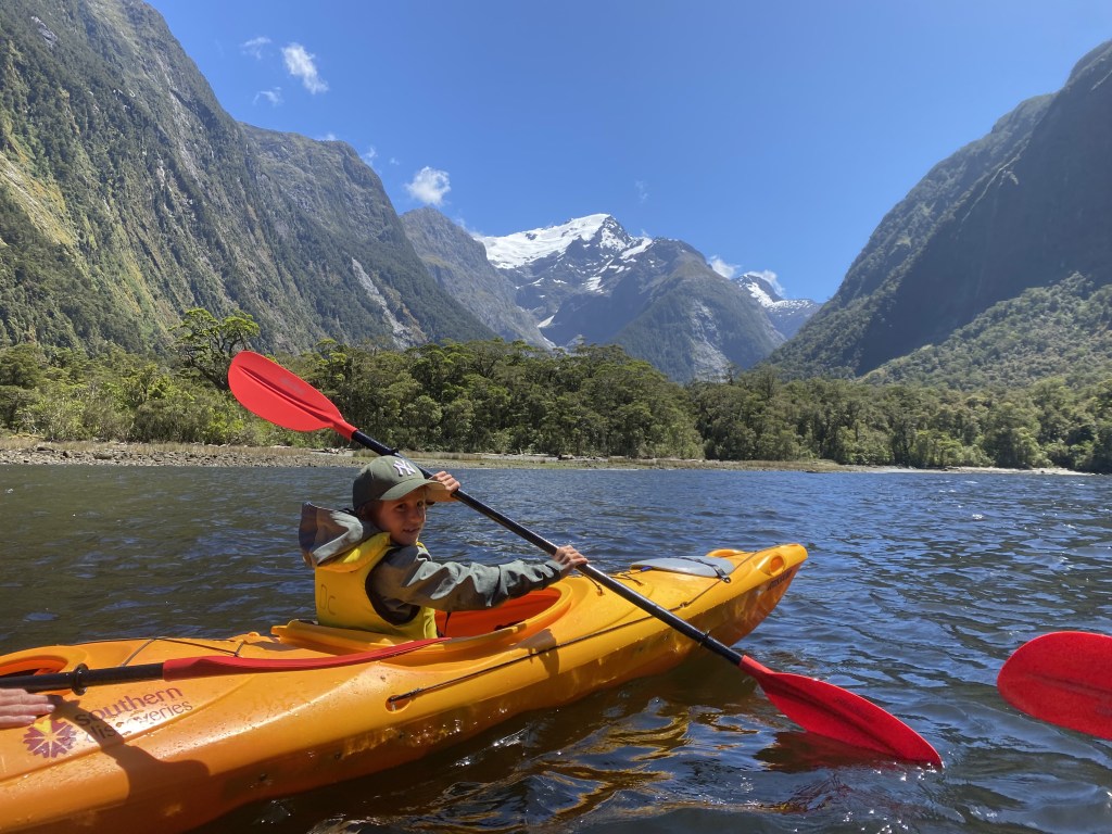 Puis nous avons fait un tour de bateau dans le fjord. On a vu des énormes cascades et des otaries à fourrure. Puis nous sommes allés dans un observatoire sous-marin et avons vu des poissons de toutes sortes, des concombres de mer, des étoiles de mer à 11 bras… Puis on a fait un tour de kayak. J’étais avec Papa. Nous avons pagayé jusqu’à des endroits où ont eu lieu des scènes du Seigneur des anneaux.