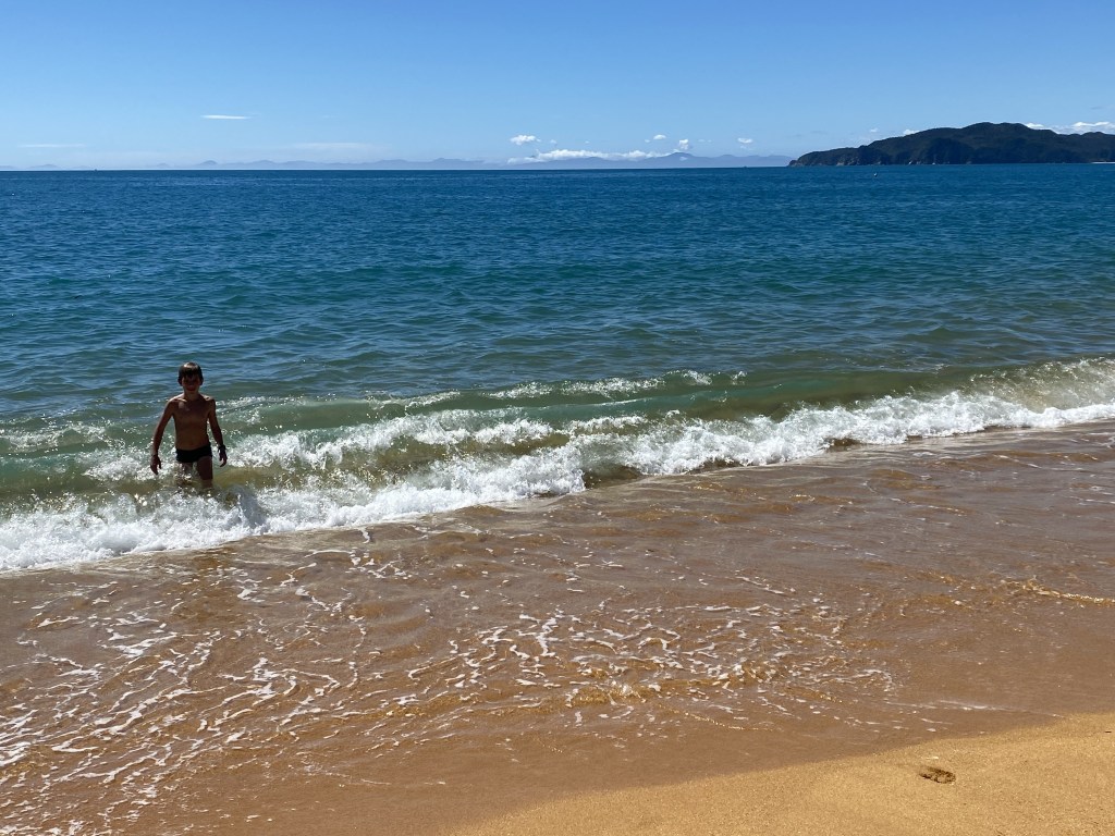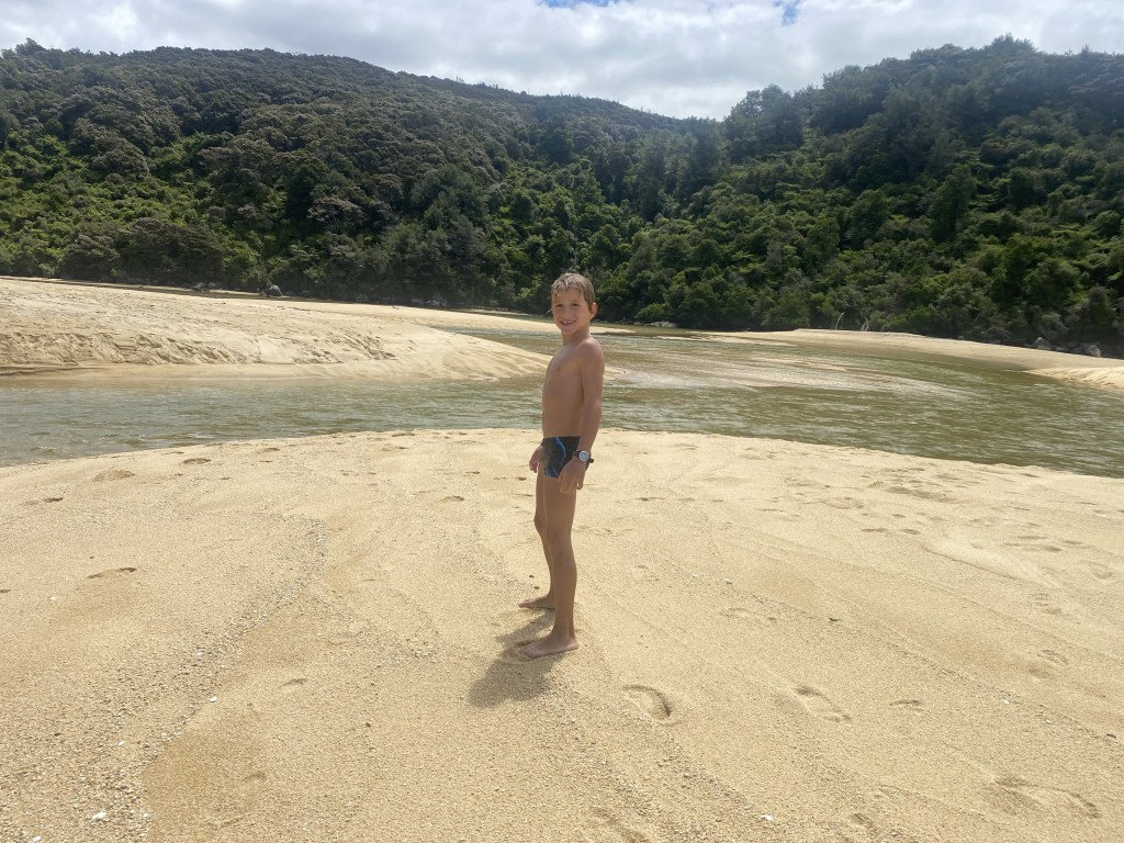 Nous avons fait une randonnée mais pour aller jusqu’aux Blue pools, il fallait traverser des ponts qui étaient fermés (car trop vieux). Nous avons quand même fait le début de la randonnée et nous nous sommes arrêtés à un cours d’eau pour s’y baigner et faire des ricochets. L’eau était très froide mais je me suis quand même baigné avec Papa.