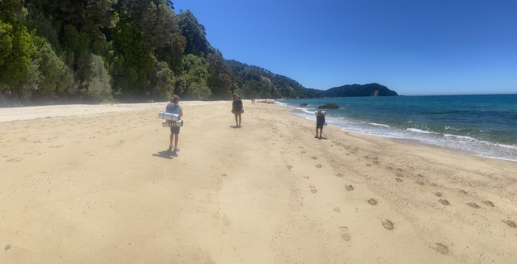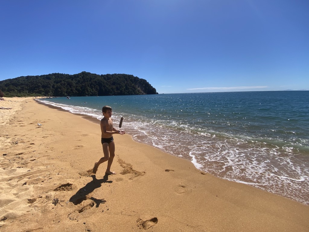 Le lendemain matin, j’ai eu l’idée de faire un arc mais ce n’était pas une réussite totale : c’était un morceau de bois et des morceaux de feuilles pour faire la corde. Mais je n’en étais pas peu fier. Ensuite nous avons marché 7km pour aller à la plage de sandfly bay. Léa et moi avons fait un tipi en cabane.