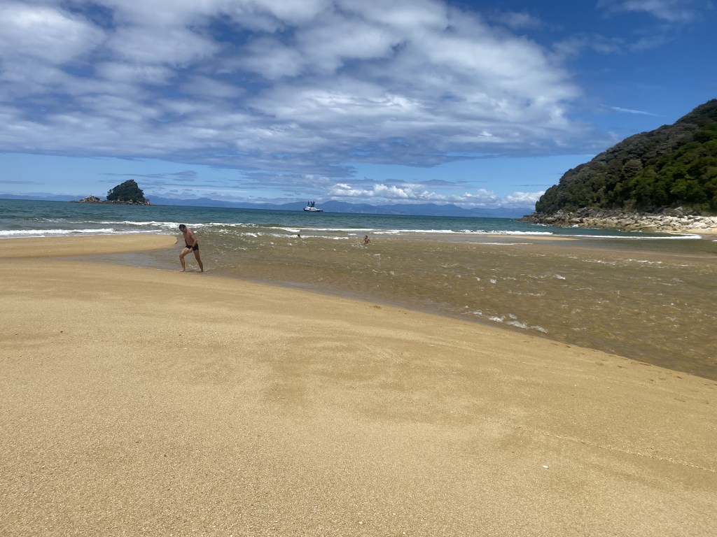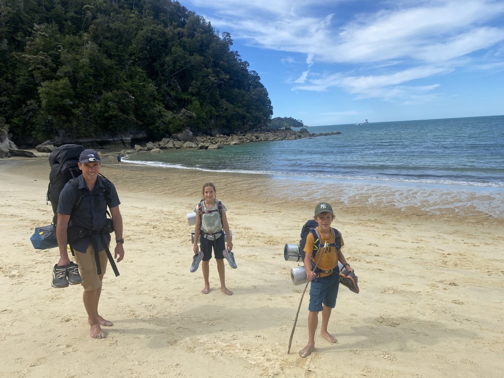 Sacs à dos de 6 kg pour les enfants, 25 kg pour Micka et 20kg sur le dos pour moi. Franchement, on était bien content d’arriver au campement les soirs. Paysages magnifiques et variés : plages superbes, forêts avec fougères, ou de type méditerranéenne, un peu de dénivelé, passage à marée basse pour pouvoir poursuivre la rando. Franchement chouette.
