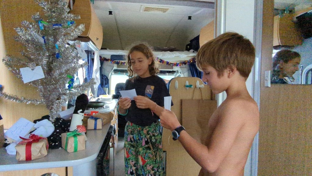 Et chasse au trésor dans le camping-car pour trouver les cadeaux de Noël le lendemain matin.