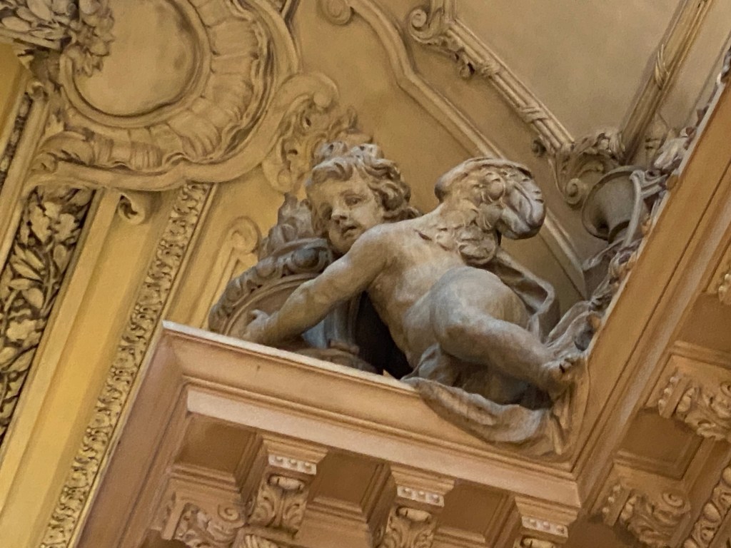 Au-dessus du rideau de la scène, il y avait des peintures d’anges avec une boule, c’était en fait les notes de musique.