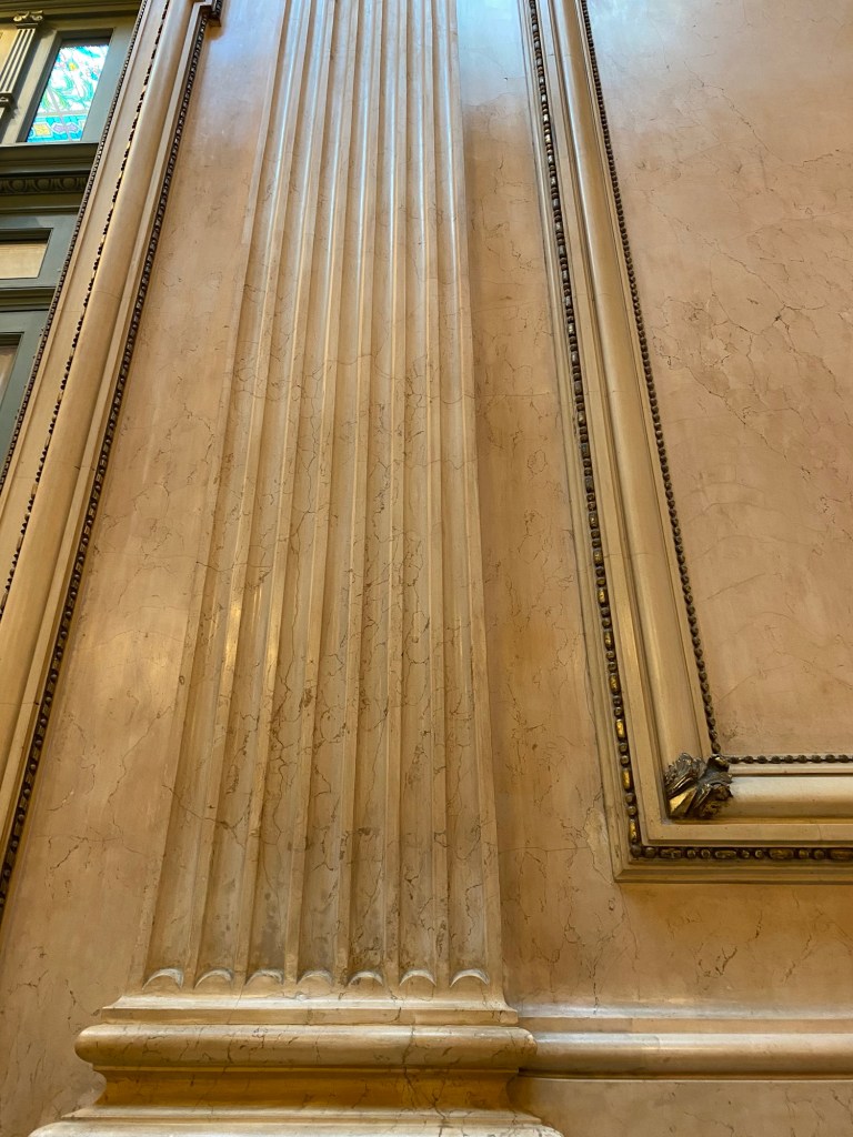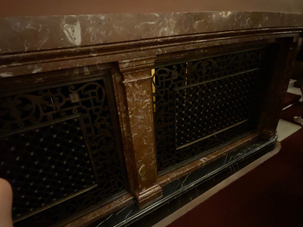 Le marbre que vous voyez n’est en fait pas du marbre. C’est en fait un mélange de pierre et de plastique. Les traits que vous voyez pour faire comme si c’était du marbre ont été peint par une seule personne !