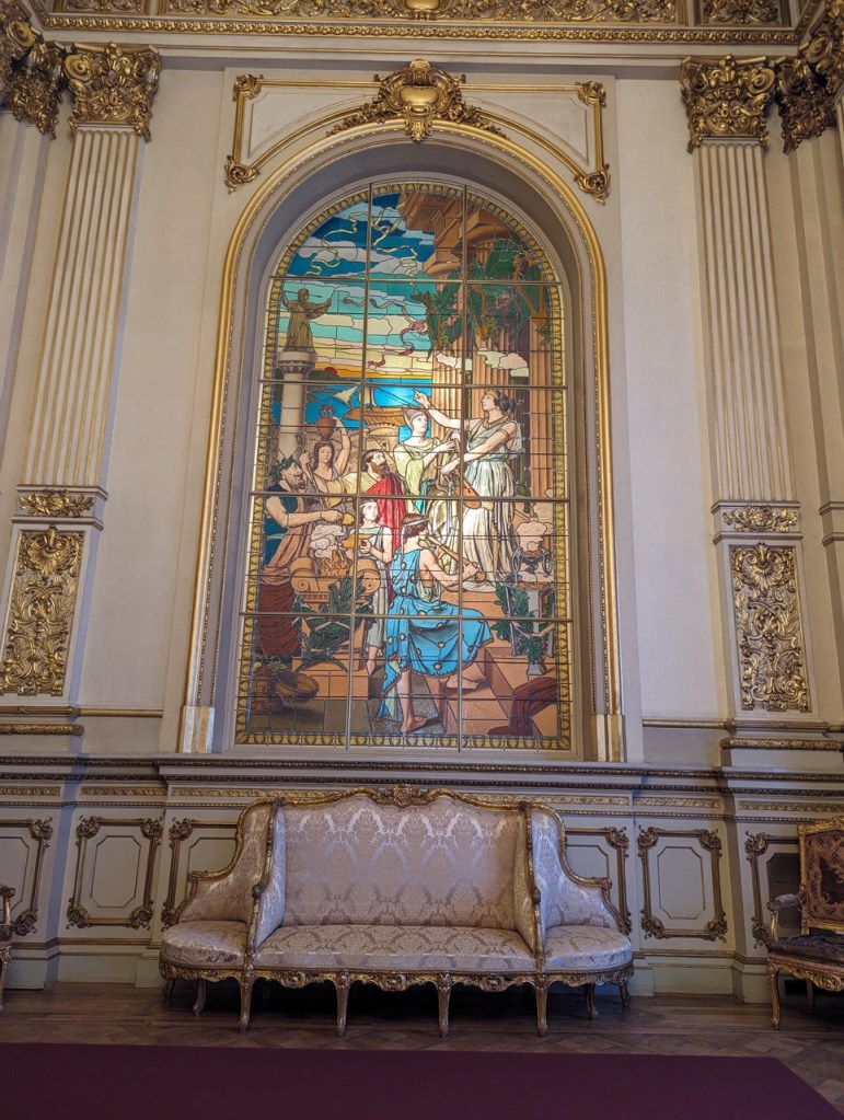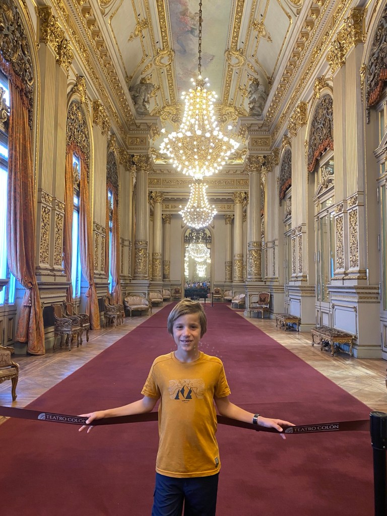 On a visité le teatro Colõn, le plus joli au monde à priori (mais en fait c’est comme les théatres français ou italiens car ce sont des français et des italiens qui ont fait les plans et l’ont construit). Il avait aussi la plus grande salle de théatre au monde (plus grand qu’à Sydney). Nous avons commencé par le hall d’entrée qui avait un grand vitrail au plafond.