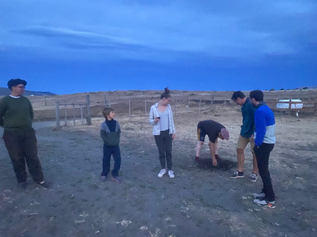 Rencontre avec les gauchos qui travaillent là (même si leur travail au ranch est plus anecdotique dans cette estancia car elle est ouverte au tourisme, cela reste cependant « très nature »), et la présence de Marie et Alex (2 français qui travaillent là depuis 2 mois) est sympa car ils nous expliquent la vie de ces jeunes et nous permettent de partager leur soirée en jouant au taba avec eux (jeu de pari en un contre un où on lance un os avec 2 fers fixés dessus, et il doit tomber avec la face dorée vers le haut pour gagner). On rencontre aussi Ophélie et Simon, 2 français très sympas en voyage pendant 3 semaines, avec qui on sympathise bien et que l’on va revoir dans d’autres villes d’Argentine.