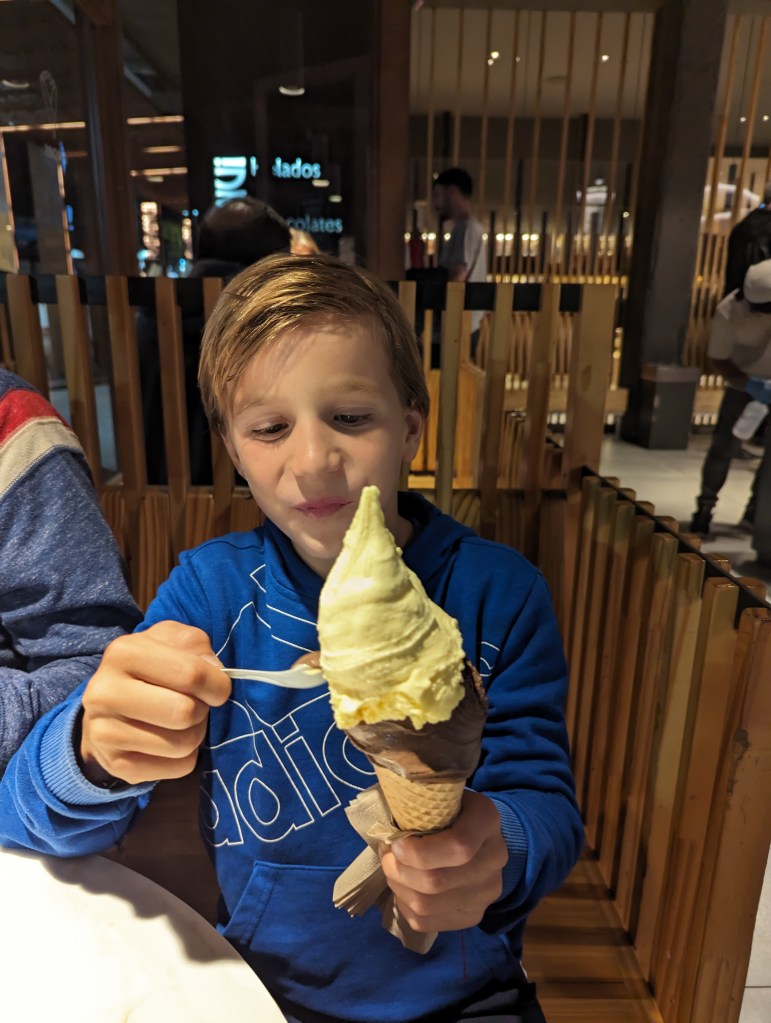 On a mangé une glace chez le glacier Rapanui, à Bariloche. Ils ont plusieurs boutiques en Argentine. C’est très connu.