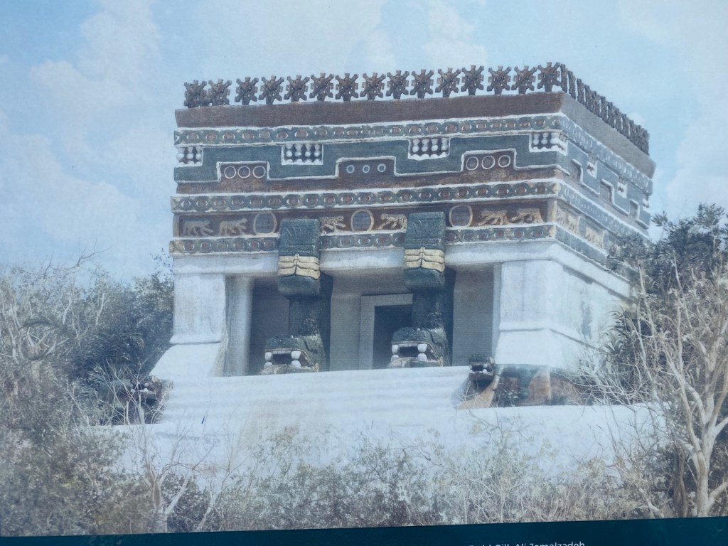 Reproduction en image du temple en haut du terrain de pok ta pok.
