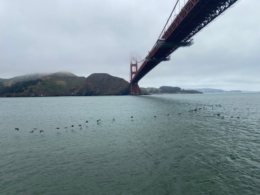 En fin de journée, passage obligé par le Golden Gate, le pont le plus photographié au monde. On l’avait déjà vu depuis le port sous le soleil, mais cette fois-ci le temps typique nuageux/brumeux nous le montre la tête dans les nuages. Sa construction fut un véritable défi à l’époque, il a fallu 5 ans pour le construire.