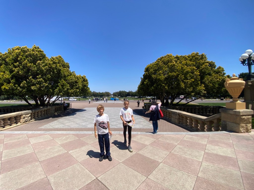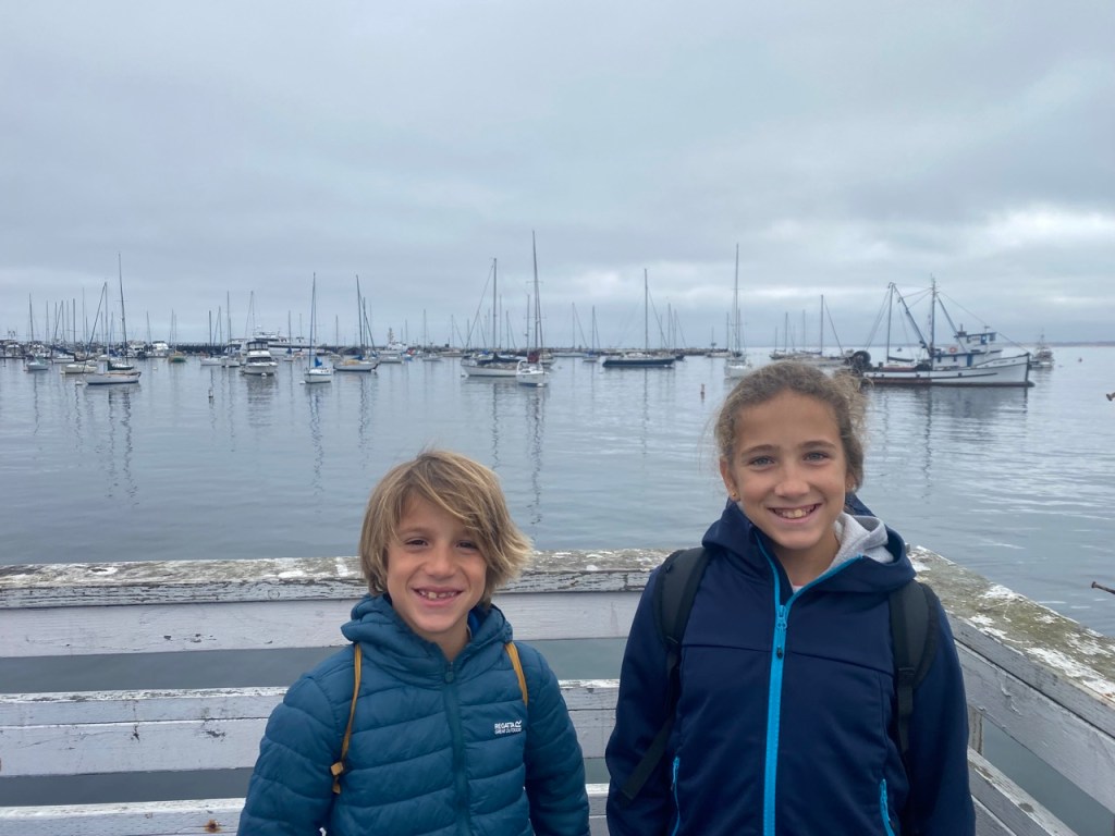 Ce cinquième jour débute par une surprise pour les enfants, nous allons voir les baleines ! Direction le sud, vers Monterey. Là-bas, les fonds marins ressemblent à un grand canyon sous-marin. Ses eaux fraiches et ses pentes abruptes concentrent énormément de poissons, ce qui attire de nombreuses baleines et autres mammifères marins qui viennent du Mexique, de Hawaï et du nord des USA. Excursion dingue pour nous : nous avons vu une famille d’orques apprenant la chasse au bébé orque, puis nous avons vu une dizaine de baleines à bosse. Quel moment magique. Nous avons appris plein de choses. Par exemple, ce sont les femelles orques qui chassent, il y a 3 « types » d’orques : ceux qui mangent des mammifères, ceux qui mangent des poissons, et ceux qui mangent des raies et des requins, ou bien encore que les baleines se nourrissent ici de mai à novembre puis partent dans les eaux chaudes pour accoucher vers janvier et allaitent leur bébé jusqu’en avril avant de rentrer vers les eaux froides pour se nourrir. Aujourd’hui, la famille des orques a tué un lion de mer. Puis ensemble, ils ont fêté cet apprentissage en remontant souvent à la surface de l’eau, en nageant les uns contre les autres, en sautant hors de l’eau. Ensuite ils ont été récupérer leur proie et ont appris au bébé orque à partager la nourriture avec sa famille et non tout manger d’un coup.