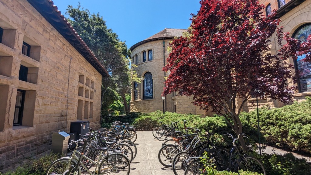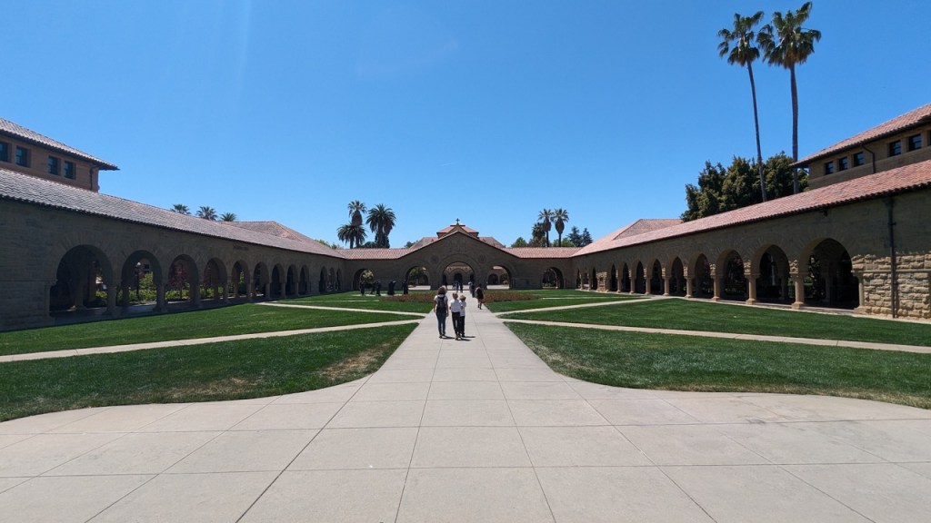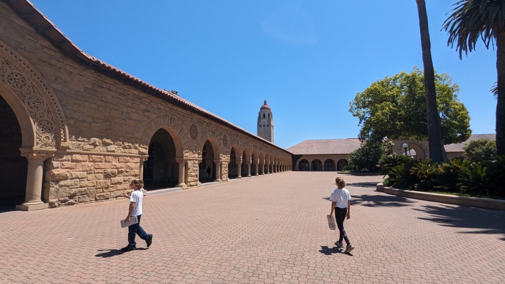 Pour notre dernier jour à San Francisco, nous roulons en direction de la Silicon Valley pour visiter l’université de Stanford. Le campus est très grands, très beau, très propre, avec un tas d’installations sportives, de laboratoires et bibliothèques, ça donne envie de reprendre les études ! Et les enfants s’imaginaient venir étudier ici !!! Une année d’étude coûte par contre en moyenne 80 000$ (chambre étudiante comprise), c’est ici que Hewlett et Packard se sont rencontrés et ont crée la marque HP (ce moment est considéré comme le début de la Silicon Valley), que l’entreprise Google a été créée, tout comme yahoo, linkedin, snapchat entre autres… Une vingtaine de prix Nobel sortent de Stanford de mêmes que plusieurs champions olympiques. Quel prestige ! Nous avons appris que l’université de Stanford a mis en place un système de brevet qui lui permet de recevoir des royalties des entreprises crées par les étudiants alors en cursus à Stanford.