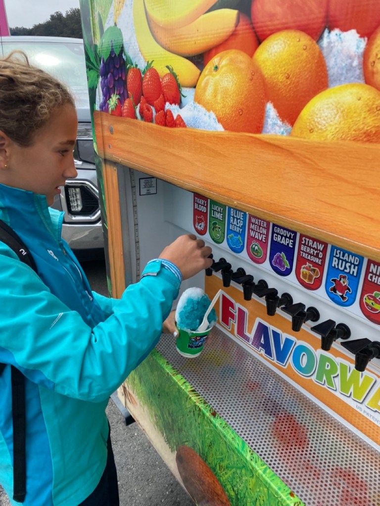 On a pris une glace au foodtruck devant le musée de Walt Disney Family. On les a achetées à SF, mais en fait c’est typique de Hawaï ! C’est de la glace pilée avec du sirop. On choisit le sirop qu’on veut ajouter et il y a plein de choix. On peut le voir sur la dernière image. Il y en a aussi plein d’autres que la vendeuse peut rajouter aussi. Tout le monde peut faire ça chez lui : prenez juste des glaçons, cassez les, prenez de la grenadine et versez-en un peu dessus !