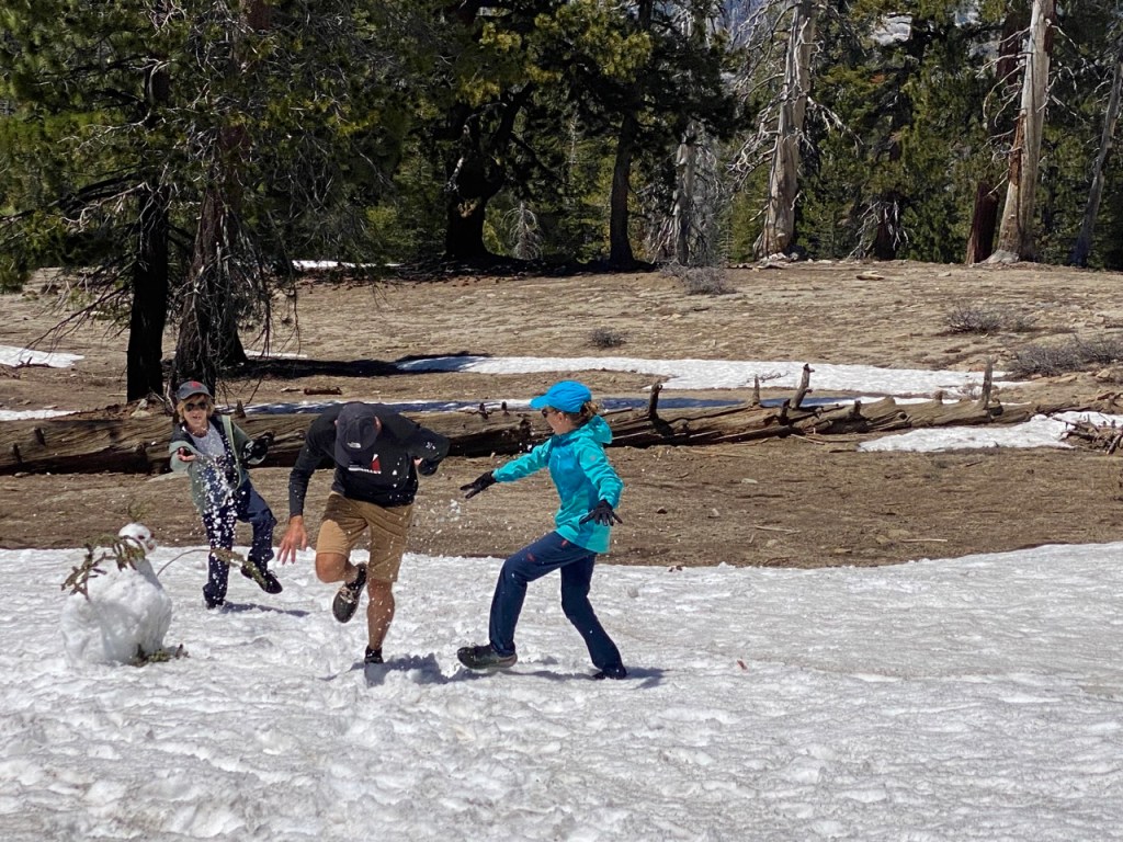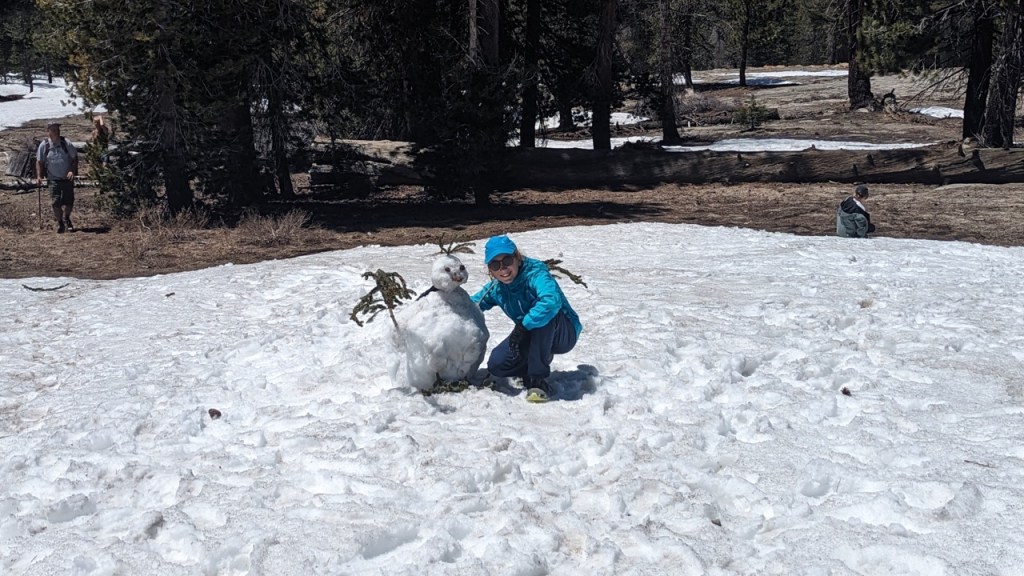 Il est encore tôt dans la saison, et plusieurs routes sont encore fermées à cause de la neige. C’est d’ailleurs l’occasion pour les enfants de jouer dans cette neige qui leur à manquer en février. Nous dormons dans des tentes avec des casiers à l’extérieur que les ours ne peuvent pas ouvrir et où l’on doit entreposer toute nourriture et tous produits odorants. Nous avons eu un temps superbe ces deux jours.