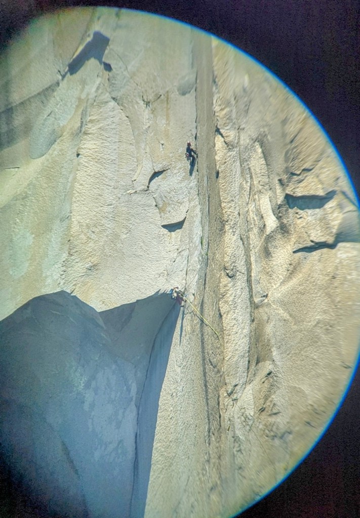 Cette falaise de granit mythique est vraiment impressionnante vue d’en bas. Ce sont plus de 1000 mètres de dénivelé qui attendent les grimpeurs qui partent à son assaut. Environ 50 grimpeurs par jour tentent d’atteindre le sommet à cette période. Pour la plupart il faudra compter deux à trois nuits passées sur la paroi pour l’atteindre, mais certains font l’ascension en une grosse journée de 16 heures environ et redescendent à la nuit tombée. La voie la plus célèbre s’appelle The Nose, elle est côtée 8b+, et elle est située sur la partie proéminente de la falaise. Les rangers du parc installent des longues-vues afin que l’on puisse observer les grimpeurs depuis la vallée.