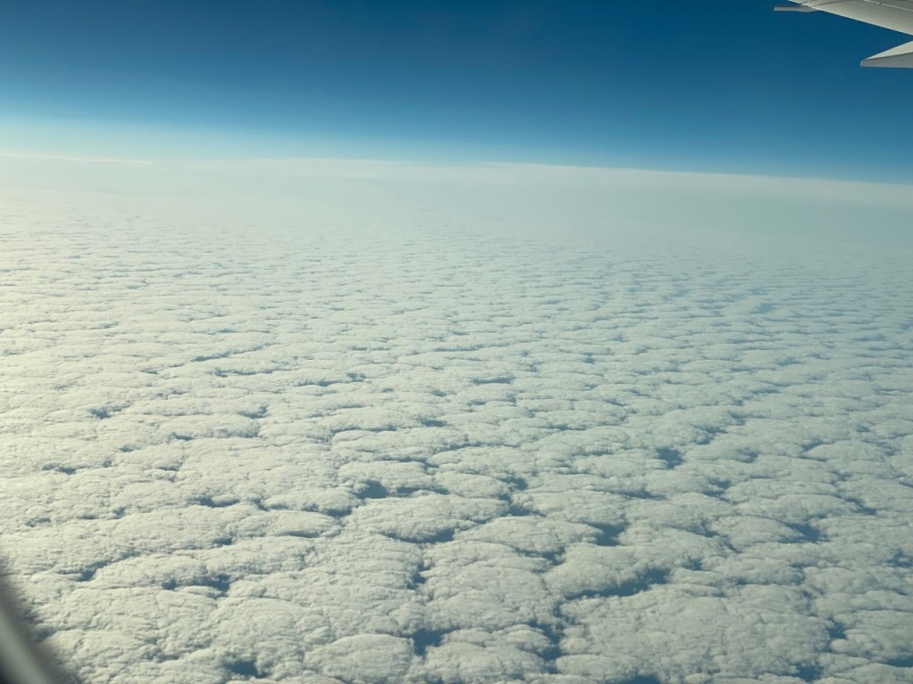 Route d’accès à la base des rangers.Marche jusqu’au petit sommet pour attendre le coucher de soleil.Nous sommes dans les nuages !Au loin derrière, le sommet d’un autre volcan, le Mauna Loa.Devant nous, le sommet du Mauna Kea à 4 205 mètres.