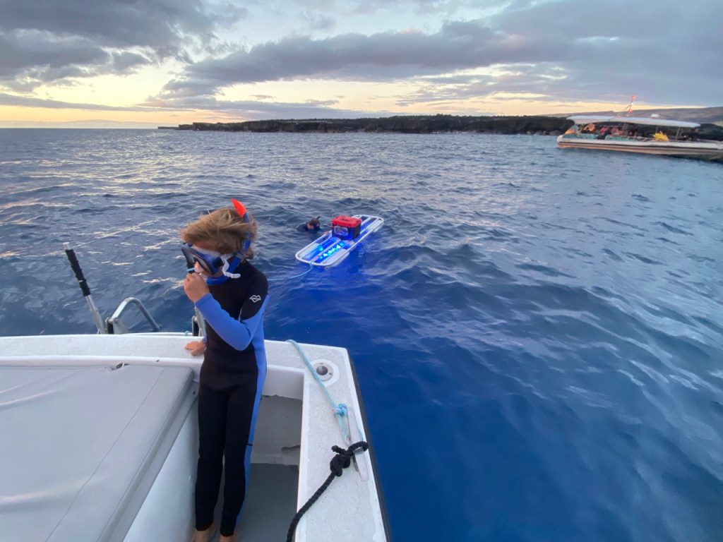 Expédition pour voir des raies manta : les plus grandes raies du monde. Celles-ci font 4 mètres. Mais en plein océan, il y a des raies manta qui mesurent plus de 10 mètres. Elles passaient tellement près de nous qu’on aurait pu les toucher rien qu’en tendant le bras. Elles venaient tout près de nous car il y a du plancton dans l’eau et les lumières de notre petit radeau faisaient briller ce plancton, ce qui attirait les raies.