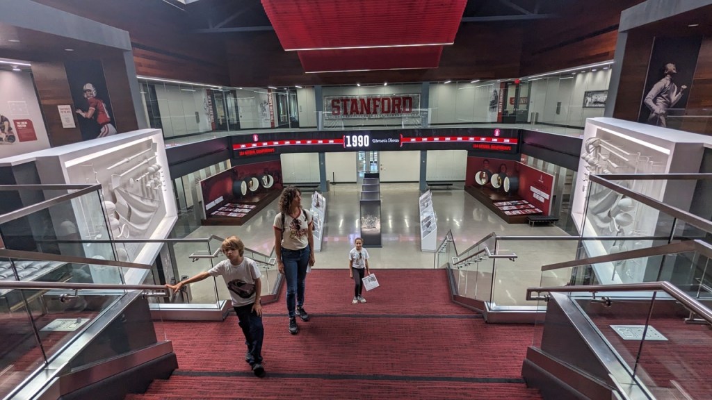 Entrée principaleStatues de RodinUne fraternitéLe hall des champions. Aux JO de Rio, l’université de Stanford aurait été à elle seule la 5ème nation au tableau des médailles.3 piscines extérieures.Ici, il y a un stade de baseball, un de football américain, un de rugby, de hockey sur gazon, un golf, un practice, etc.