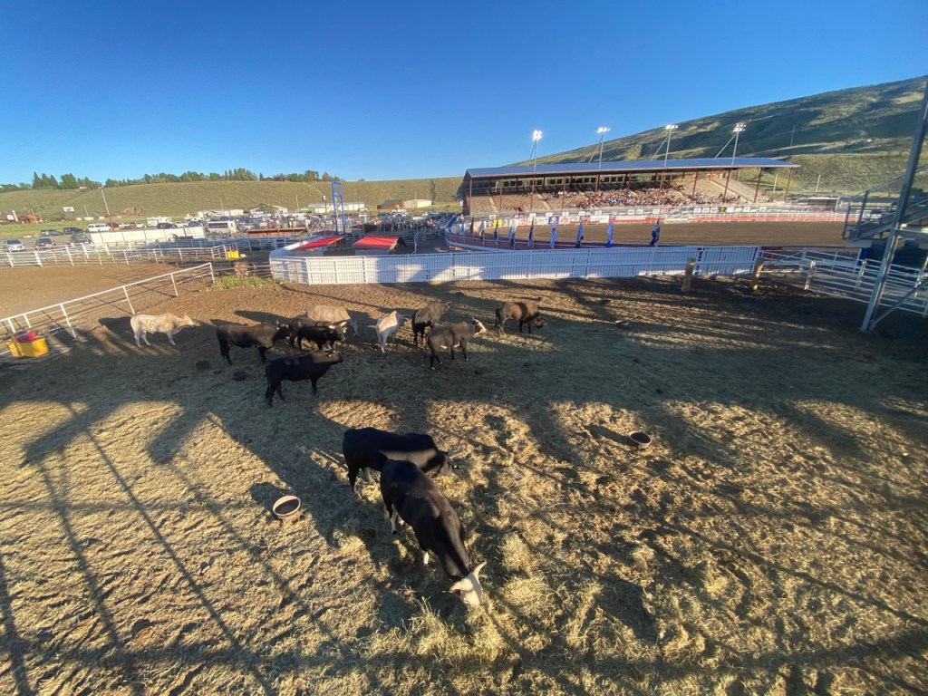 Là, ce sont les vaches à cornes dans leur enclos avant d’aller faire le rodéo. Elles ont l’air toutes mignonnes. Mais en vrai, quand on les énerve, ça devient des machines.Je vois pas pourquoi nous aussi on aurait pas le droit de faire du rodéo. Bon en vrai chez Papy et Mamie au Festidreuz on est les meilleurs, mais là c’est carrément l’inverse, on est les plus nuls ! En plus le taureau est énorme, donc on n’arrive pas vraiment à s’accrocher. Et puis là, ce sont les vraies techniques de rodéo donc on a le droit de tenir la sangle avec un bras, l’autre sert à nous équilibrer. Ceux qui sont passés après nous avaient 13 ans et restaient trois fois plus longtemps que nous, en faisant des cabrioles bien plus jolies.