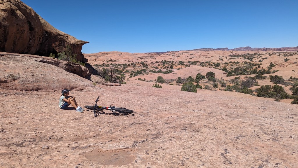 On a fait du vélo sur des dunes de sable fossilisé. On a fait une petite partie du parcours slick rock qui est très connu. C’était très difficile. Ensuite, on a fait un autre parcours qui s’appelle Brand Trails, que j’ai moins aimé car il n’y avait plus de cailloux et que ça te faisait mal aux fesses.
