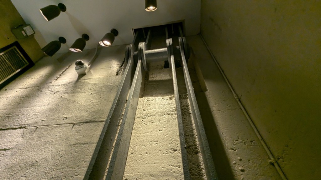 La quai pour accosterL’entrée dans la prisonLa bibliothèqueLa cellule du prisonnier avec la fausse tête pour faire croire qu’il dormait alors qu’il s’était échappé.