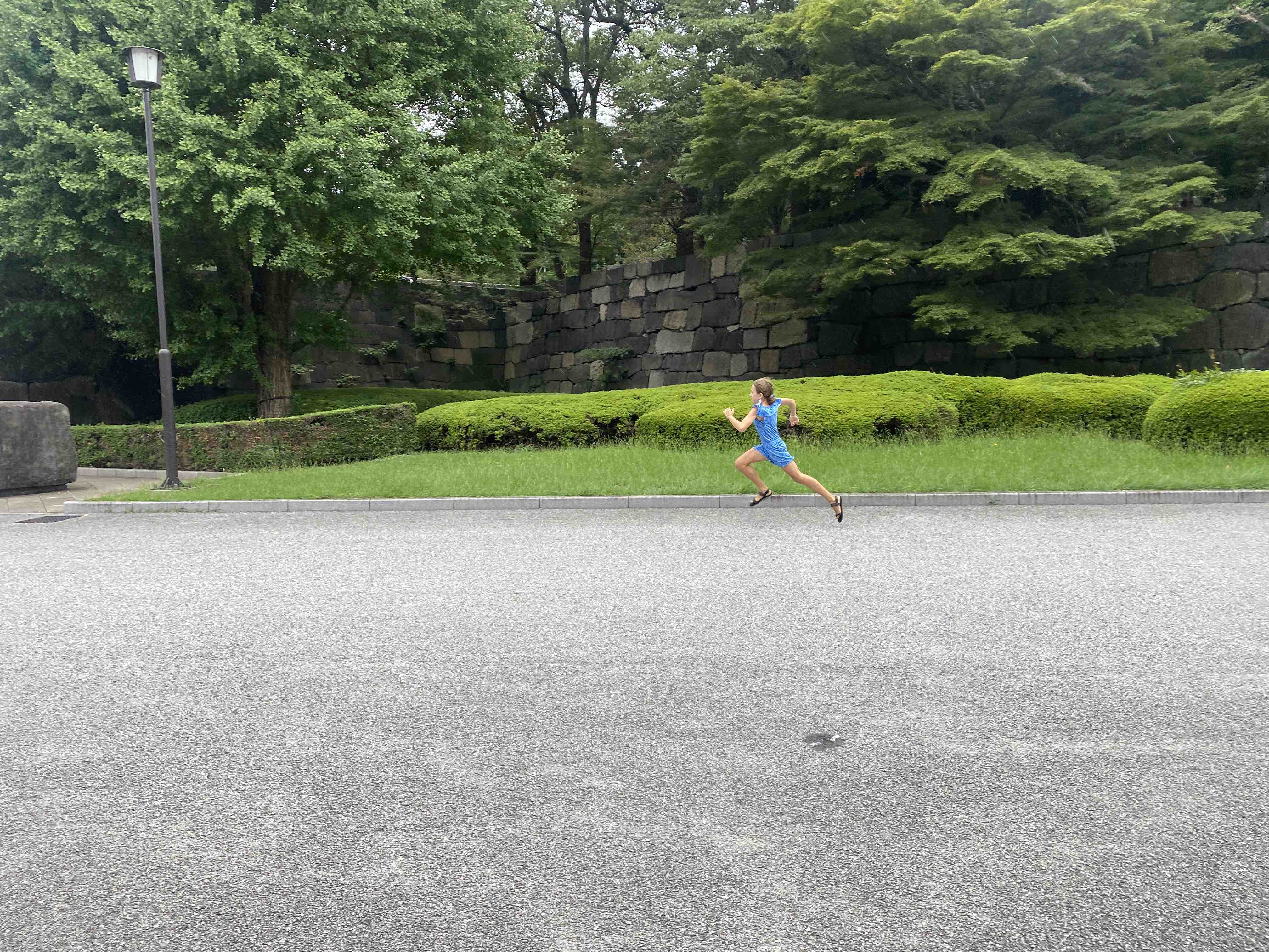 On est allé dans le parc du palais impérial !!! C’était typiquement japonais : avec des érables, des bonzaï, des étangs avec des poissons sacrés qui réclamaient à manger, la pelouse était parfaite. J’ai couru un 100 mètres et dessiné un paysage.