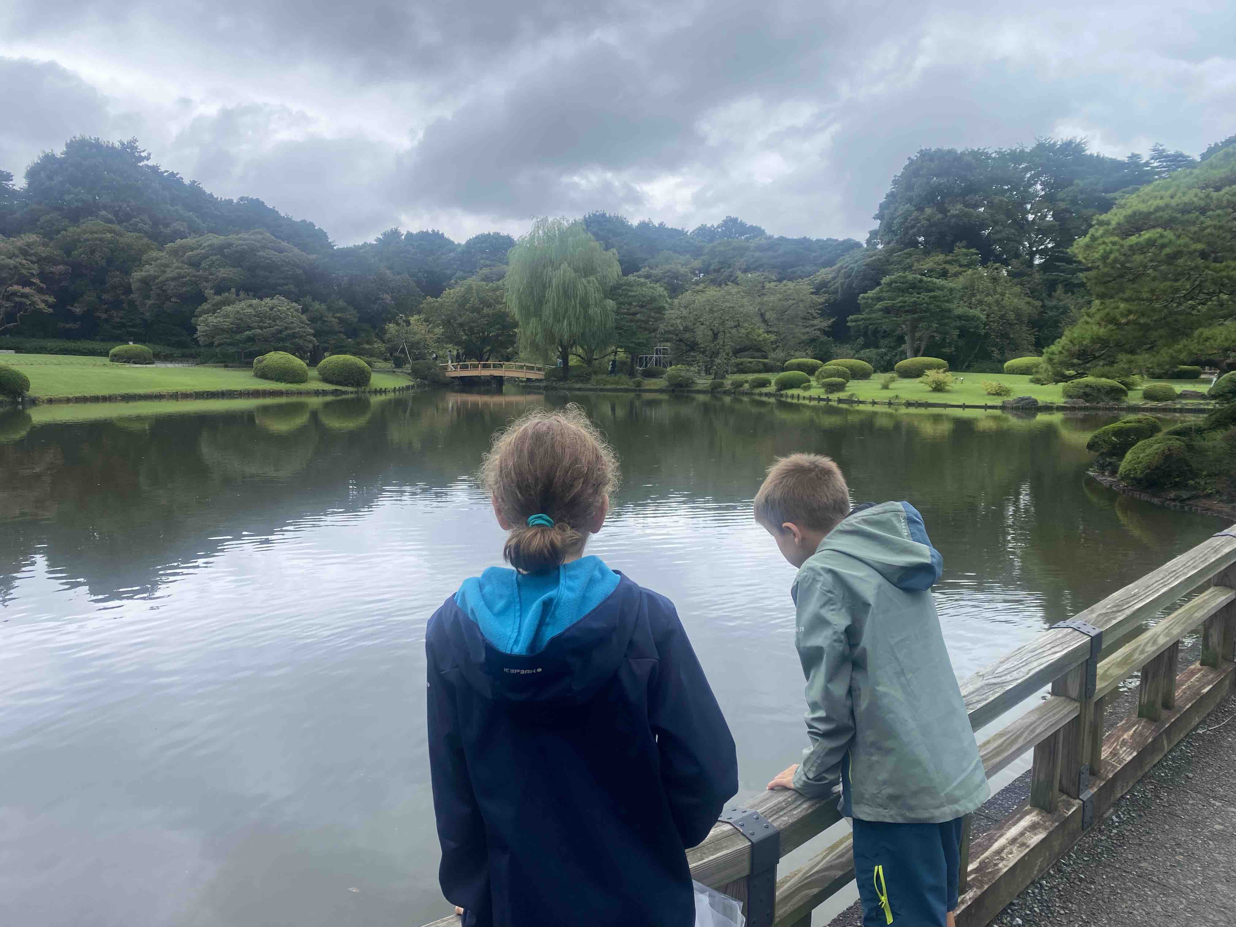 Dans le parc Shinjuku Gyoen, il y avait un espace qui ressemblait au parc de la mairie mais en plus grand ! On y a fait des équilibres.