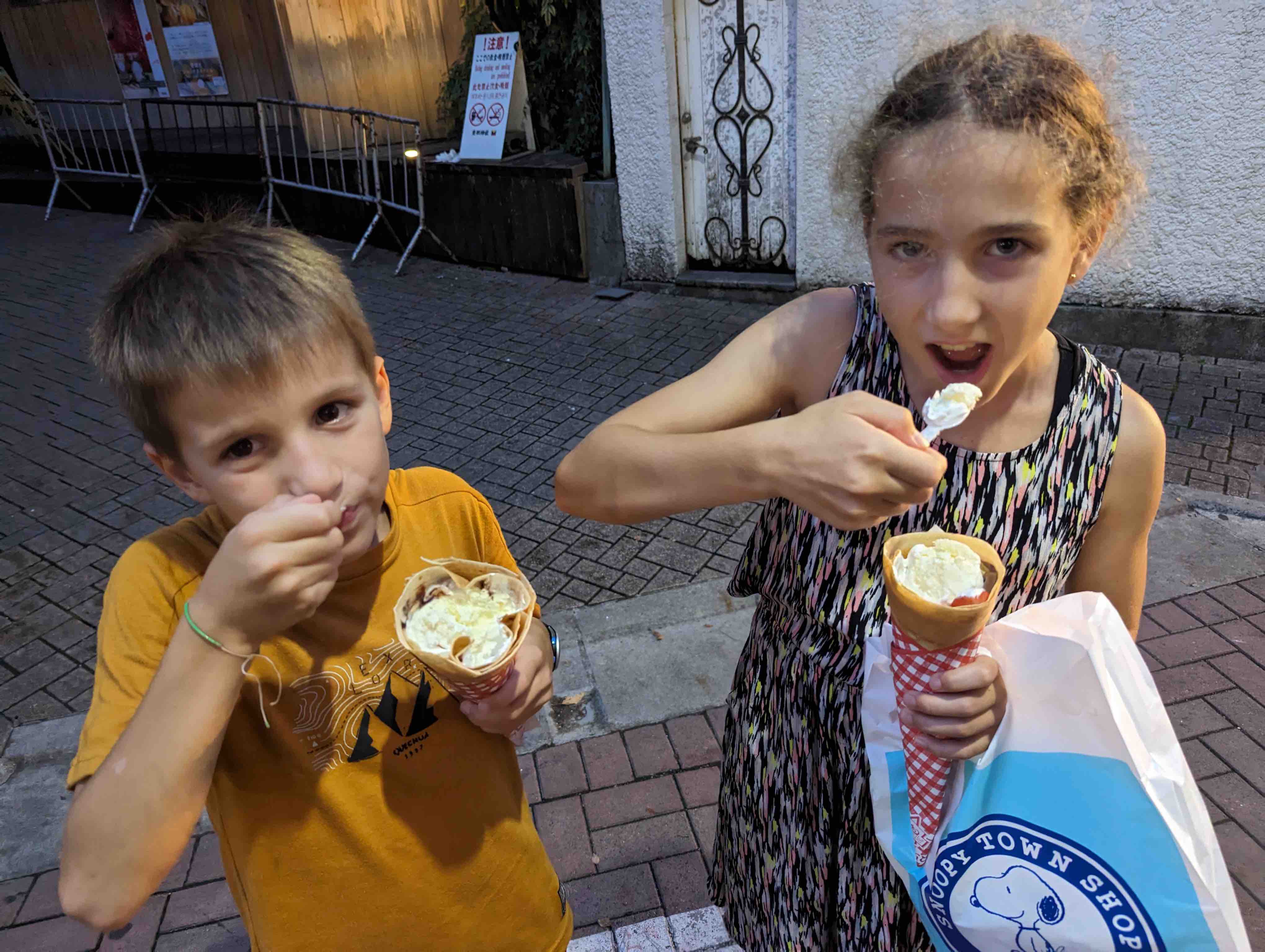 On a essayé quelque chose de pas vraiment banal : on a goûté des glaces avec des feuilles d’or. En fait, c’est une glace normale avec un goût métallique autour.