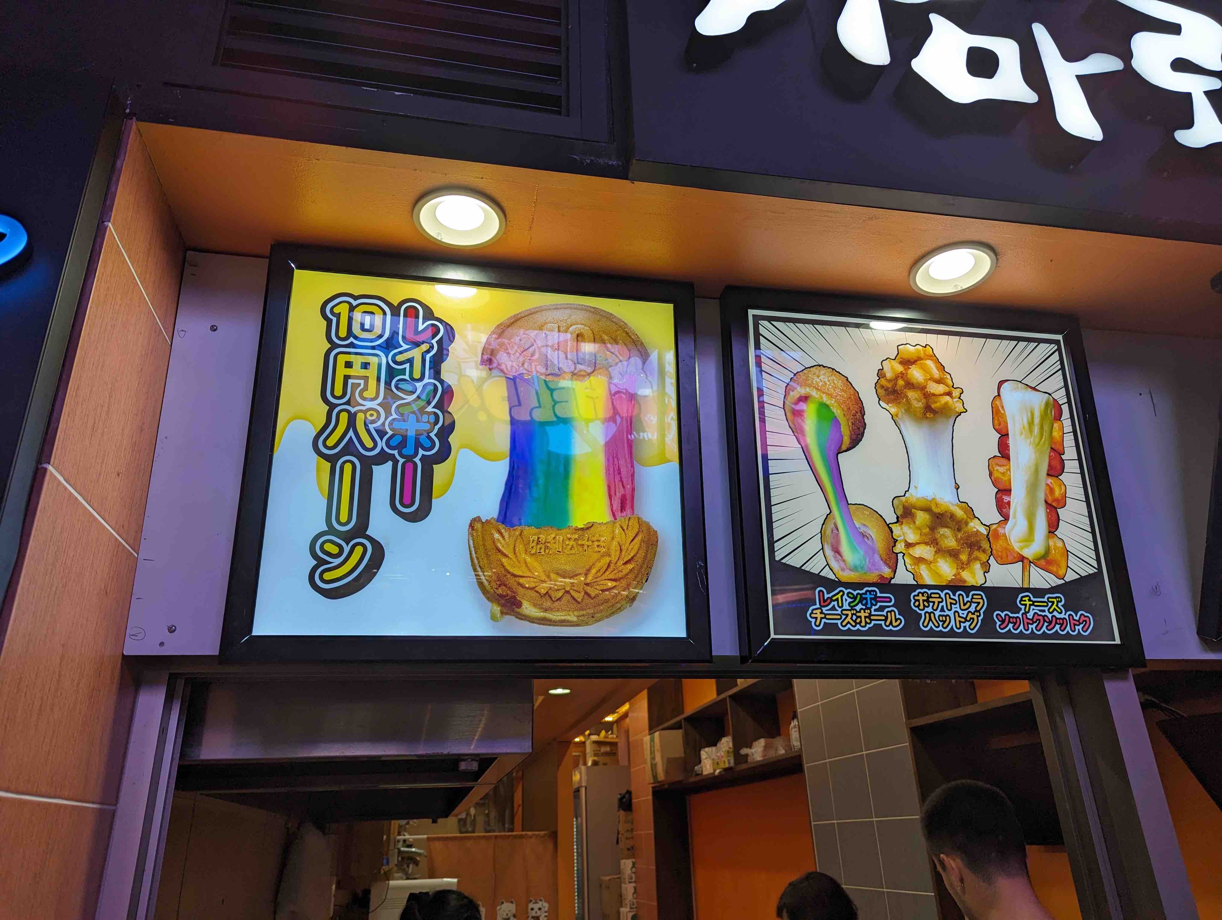 Il y a du fromage couleur arc en ciel mais on n’y a pas goûté ! Par contre, on a pris une pris une crêpe avec une glace à la vanille, de la chantilly, des fraises et du nutella. Le fait de manger une crête après avoir mangé vietnamien et japonais pendant un bout de temps faisait du bien !! C’était vraiment délicieux. J’en reparlerai dans mon article sur le défi glace.