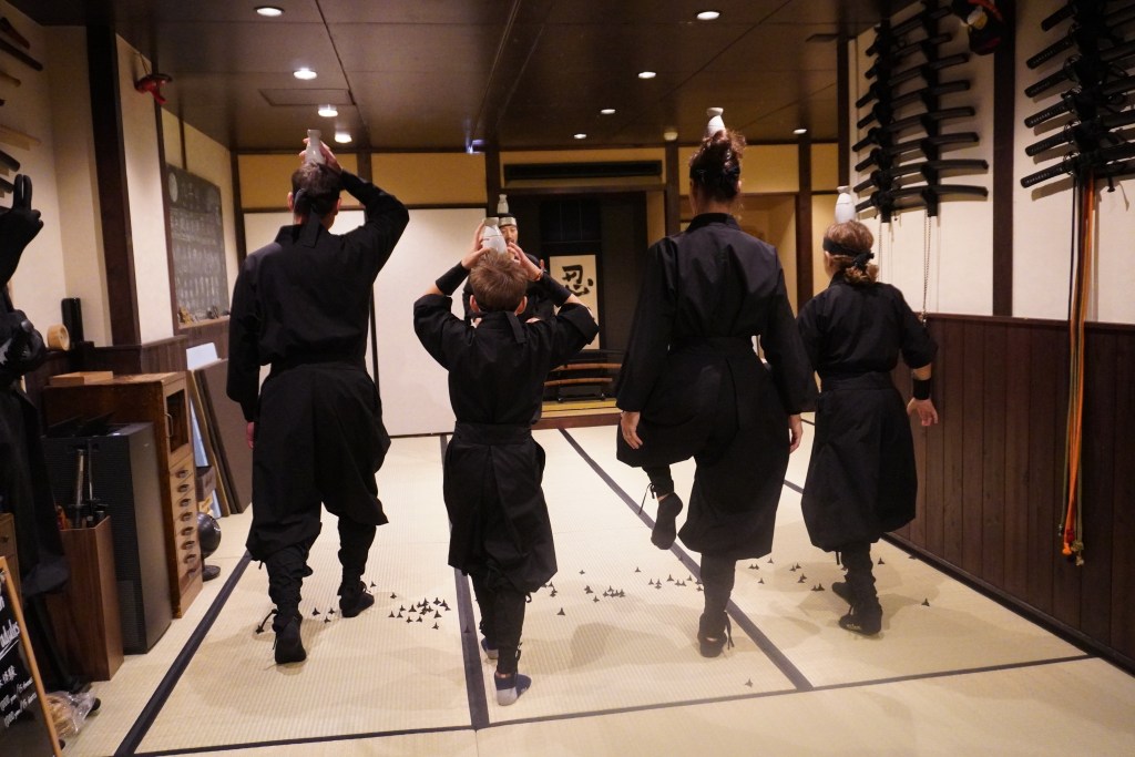 On a tous les 4 fait un cours de ninjas-samouraïs. C’était très bien et on a appris plein de trucs et astuces pour ne pas faire de bruit en marchant, se faufiler dans des passages secrets, éviter les pièges, se défendre et attaquer. Le but des ninjas est de trouver des informations et de les rapporter dans leur pays. Ce sont des espions. Comme ils doivent revenir en vie pour rapporter les informations, ils se défendent surtout ou ils s’échappent. Les samouraïs sont des guerriers, des combattants, ils défendent leur territoire ou attaquent. On a manié plusieurs armes dont des sabres et des shuriken (les étoiles de ninjas).