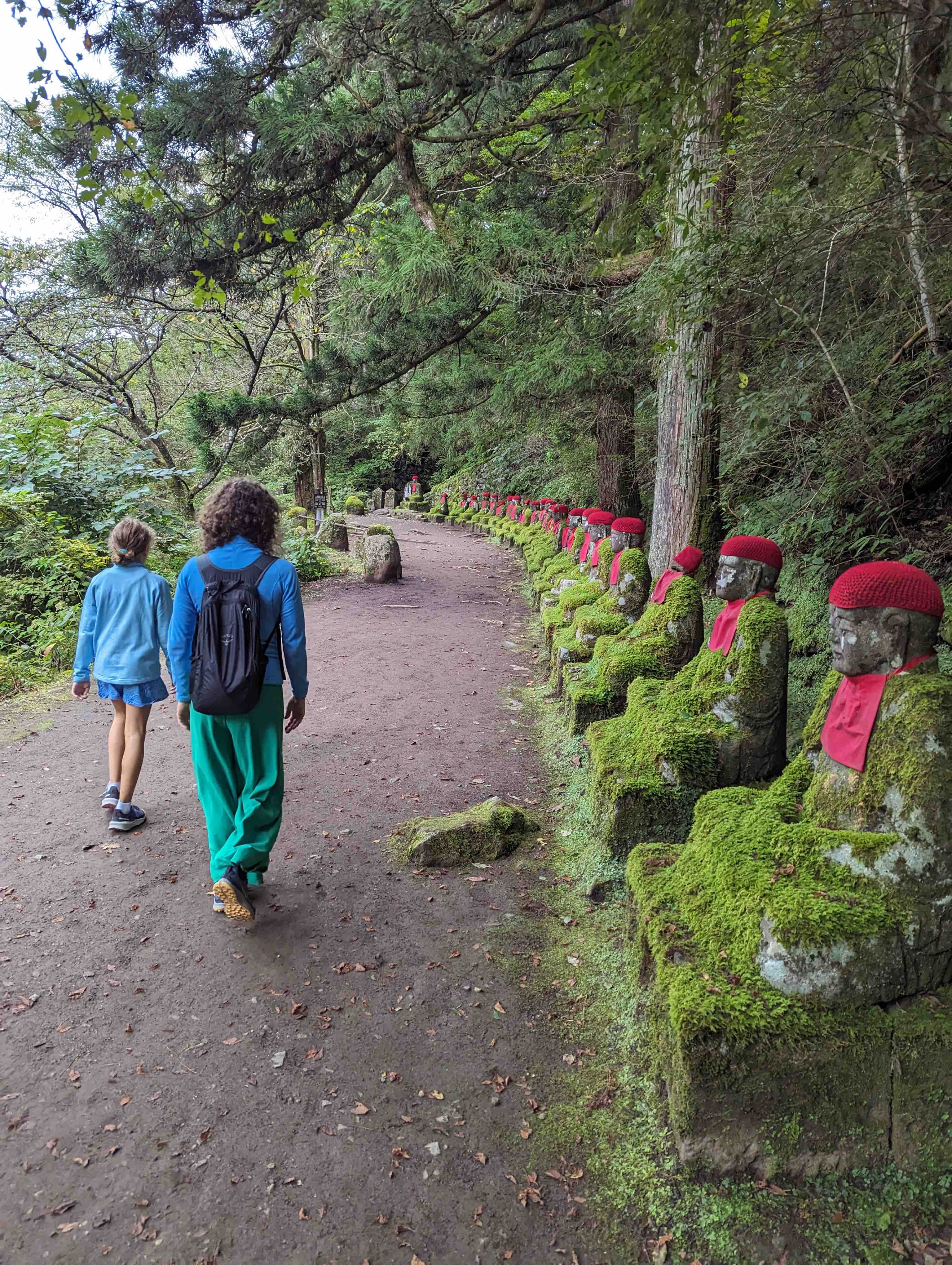 Le pont Shinkyo permet d’entrer dans la zone sacrée. En longeant la rivière, on trouve l’abysse Kanmangafuchi avec plein de statues Jizo avec des bonnets et des bavoirs rouges.