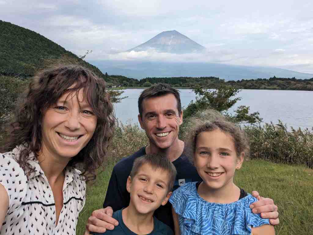Sur la route jusqu’au Mont Minobu, nous faisons un arrêt au lac Tanuki pour un point de vue sur le Mont Fuji.