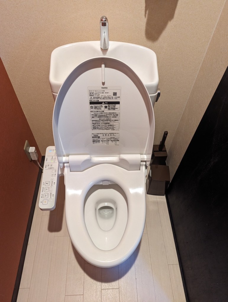 Et évidemment les fameux toilettes japonais. Tout est commandé électroniquement : la lunette chauffante, le jet d’eau (2 modes : homme et femme), la petite musique à actionner si l’on veut rester discret, le désodorisant intégré : les champions du monde ! Pratique : le circuit de remplissage de la réserve d’eau passe par un lave-main au dessus, 2 en 1.