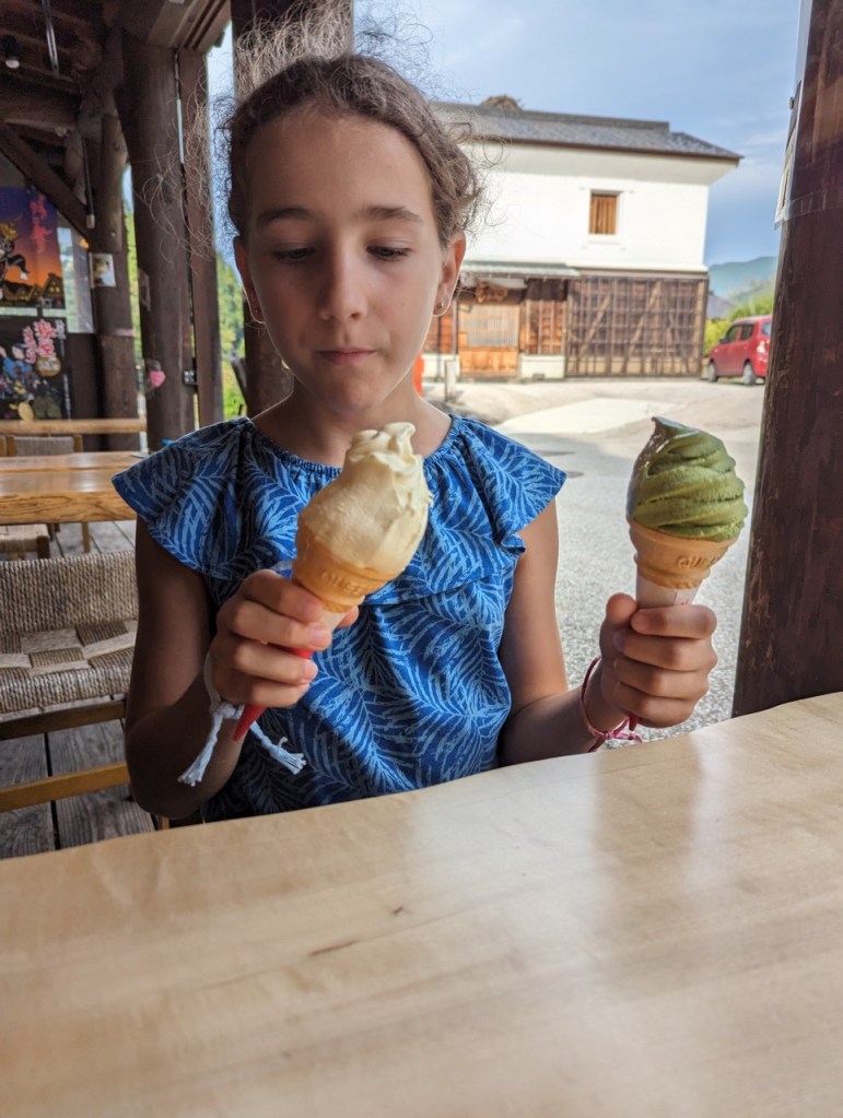Beaucoup d’originalité pour cette glace ! Kanazawa signifie marécage de l’or car une légende raconte qu’un paysan en a trouvé dans ses terres. Ils utilisent la feuille d’or dans de nombreux domaines, y compris pour les glaces ! Nous avons goûté un parfum vanille, recouvert d’une feuille d’or.